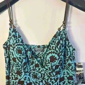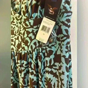 American Living Womens Teal Brown Long Stretch Dress Padded Bra Sz 12 NWT $110