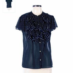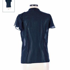 American Living Womens Top POLKA DOT Button Blouse Short Sleeve Blue & White Med