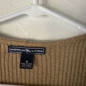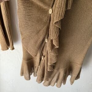 American Living Sweater Womens Small Tan Ruffle Trim Ribbed Knit Cardigan Top