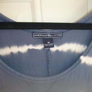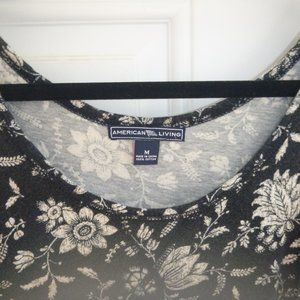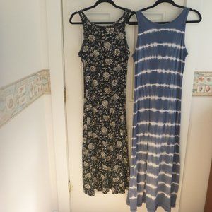 Women's American Living tank dresses, size M, black with floral print calf length; blue with white stripe maxi, $10 each