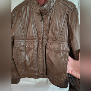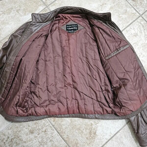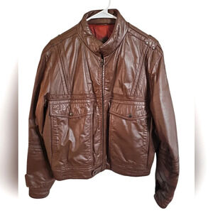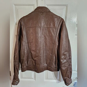 American Male Vintage 80s Brown Leather Bomber Moto Jacket Size 40 Medium Retro