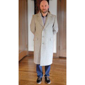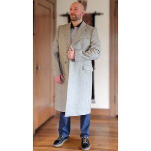Gorgeous tailored men's overcoat is 100% wool, fully lined with satin.Tailored waist and careful detailing gives this overcoat a classic look with stylish flair.