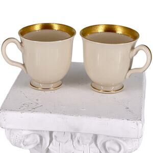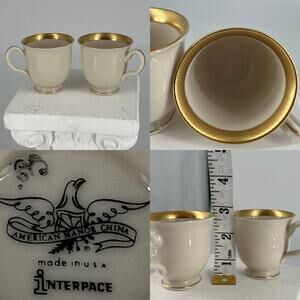 American Manor Shenango Templar Ivory Gold Rim Demitasse Teacups Elegant Vintage