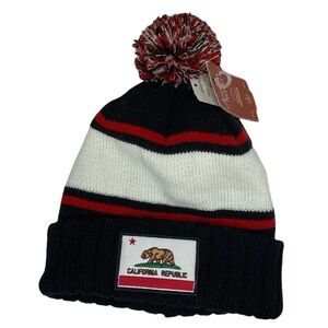 New with tags! Nordstrom American Needle unisex California Republic cuffed knit stocking hat with pom pom topper. Red, black and cream. One size fits most. Smoke-free home!