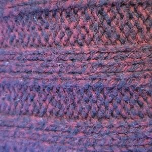 This is an American Outfitters mock turtleneck in burgundy and black cableknit sweater. 70% lambswool. Very thick and warm. Size is an XXL.