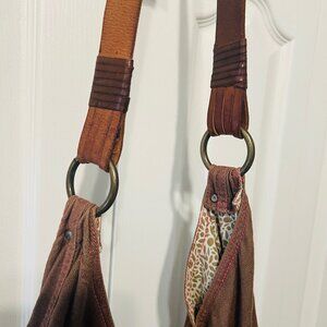 American Outfitters-Brown/Pink Canvas Boho/Hippie Shoulder Bag-Leather Strap