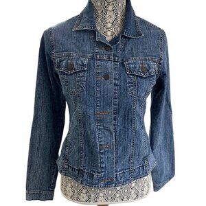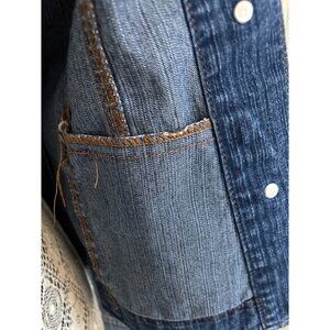 American Over Size Small Denim Jacket Collared Long Sleeve Blue Casual Layer