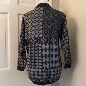 Excellent condition grey patterned sweater! 100% acrylic; machine wash, tumble dry low.