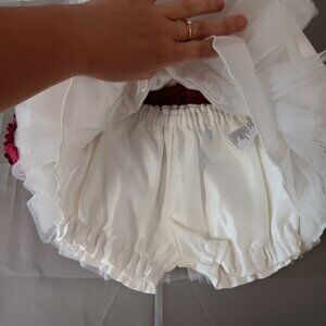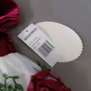 Up for sale is a stunning American Princess baby girl's dress, new with tags. It is size 6 months. This beautiful formal dress features a rich red velvet top with a bow accent, a white tulle mesh skirt adorned with large red floral appliques, and a matching red bow on the back. There are even matching white satin underpants. This is a perfect outfit for a special occasion, holiday party, or wedding. If you like baby clothes (even vintage) I have a few others listed if you'd like to take a look. Thanks for looking!