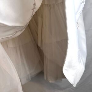 DRESS: Sleeveless, back zip (with faux button up look), embroidered floral, jeweled, tulle lined skirt, fit and flare