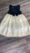 Beautiful American Princess dress, black velvet top, bow at waist, gorgeous gold skirt with beautiful gold embroidery, rhinestone embellished waist, ties in the back, back zipper, lined, new with tag.