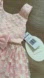 Light peach pink and cream lattice pattern overlay. Slight shimmer. Rhinestone belt detail finished with tulle layering.