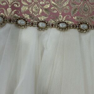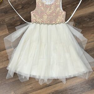 American Princess Pearls and Tulle Sparkle Fancy Dress Size 7 Pink/Cream/Gold