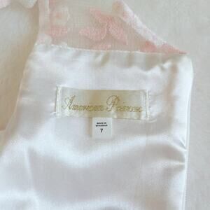American Princess White Dress Girl Sz 7 Embroidered Florals, Pearls, Flower Girl