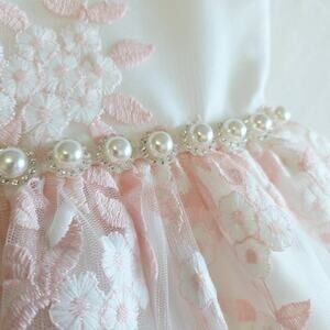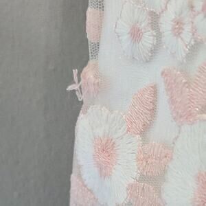Condition: Pre-owned. Worn once. 1 pink petal near bottom hem started to come undone but is still fully connected (last 2 photos). 1 stained & messy seam on solid white skirt layer (third to last photo).
