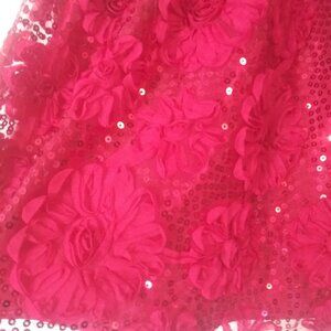 American Princess red floral sequin dress, sleeveless, underlay, pull over with back zipper closure
