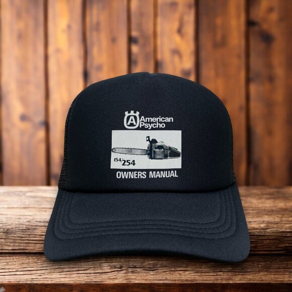 American Psycho Owners Manual Mens Trucker Hat Black Patrick Bateman Horror Cap