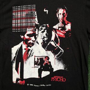 American Psycho Think My Mask of Sanity is About to Slip T-Shirt Size Large It roughly measures 25 inches pit to pit 30 inches long. Great shirt for your closet.
