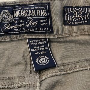 Like new, worn a couple of times, in excellent condition, men's American Rag jeans, Slim Straight, light gray, 98% cotton, 2% spandex, size 32x30, smoke-free home.