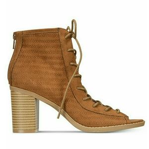 Lace up • Peep Toe • Zipper Back • 3" Heel • Ankle Boot • Maple