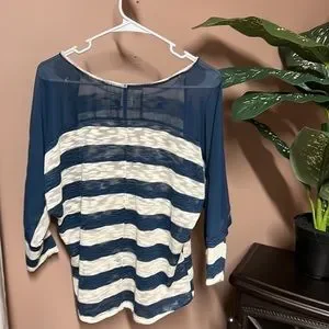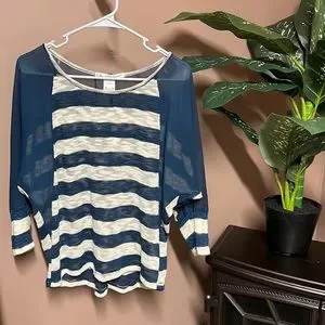 Lightly knitted sweater material with sheer blue material. Great condition.