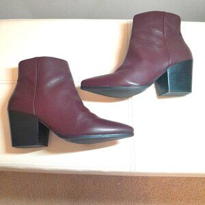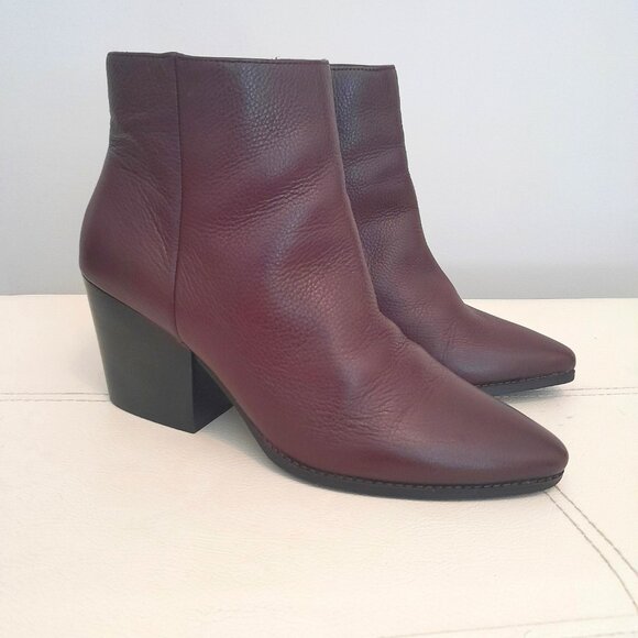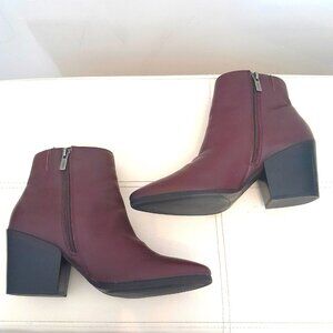 Step into style with the American Rag Eryn Almond Toe Wine Colored Fashion Bootie, a perfect blend of elegance and comfort. Crafted from genuine leather, this size 9M bootie features a chic almond toe design that elevates any outfit, while the understated rubber bottom front sole ensures superior traction for all-day wear. Embrace the rich wine hue that adds a pop of color to your wardrobe, making these booties a must-have for fashion-forward individuals. Don't miss out on the opportunity to enhance your shoe collection with this versatile and stylish piece.