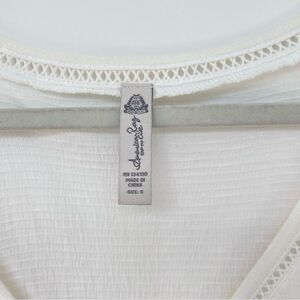 Light, airy, and effortlessly pretty — this American Rag peasant blouse features flowy bell sleeves, delicate crochet trim, and a flattering relaxed fit in a crisp cream hue. The perfect piece for weekend strolls, music festivals, or laid-back brunch dates with a feminine, minimalist vibe.