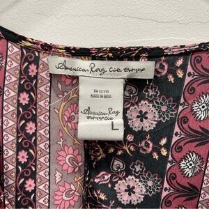 American Rag Belted Floral Button Front Fit & Flare Dress Bell Sleeve Large