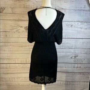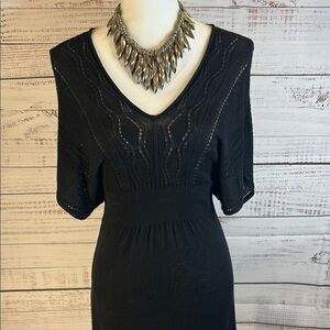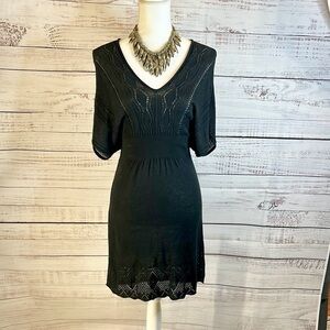 American Rag Black Crochet Knit Boho Dress | V-Neck, Stretch Eyelet Hem Size XS