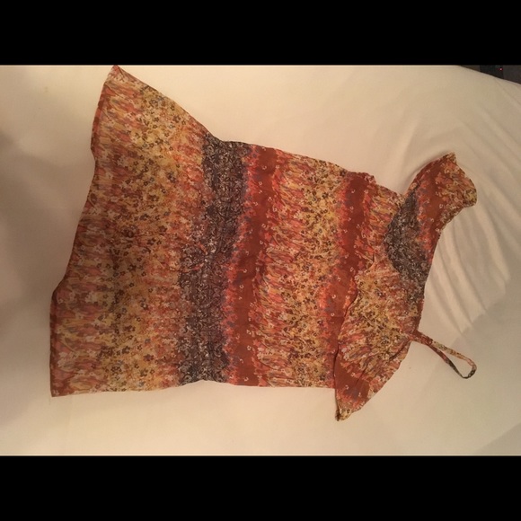 This asymmetrical American Rag blouse is colorful and unique! It looks perfect with leggings or jeans and it has so many details about it you’ll just love. Worn only a few times!