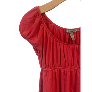 American Rag Blouse Womens S Orange Short Puff Sleeve Scoop Neck Smocked Top