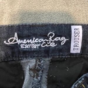American Rag Blue Jean Trouser Dark Wash Denim Contrast Stitching Stretch Flare