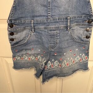 American Rag Blue Jeans Overall Cutoff Shorts Size 3 Junior Embroidery Floral