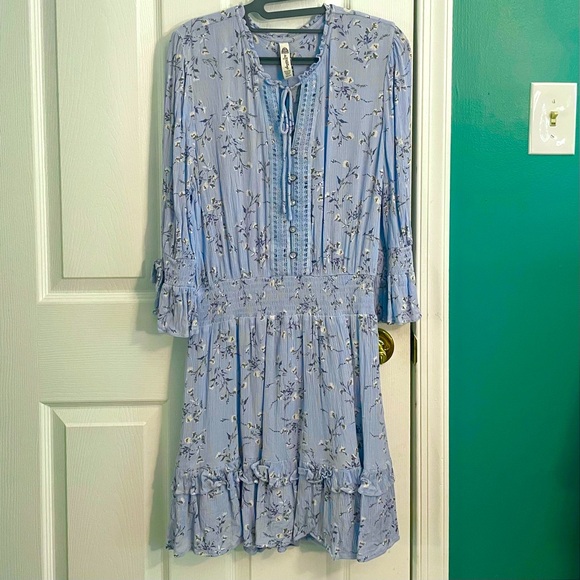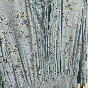 American Rag Baby Blue Button-down Long Sleeve Sundress with White Floral Motif