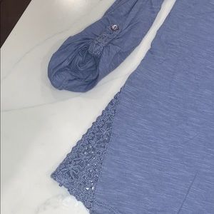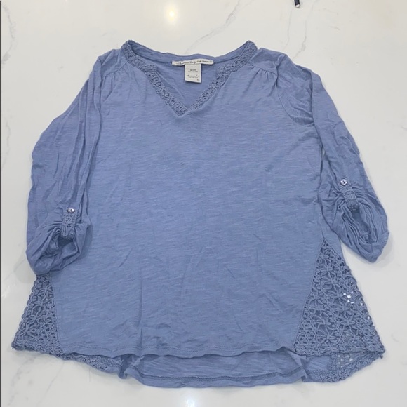 American Rag 3/4 sleeves Crochet cutouts V neck Size- small Will accept any reasonable offer! “LIKE” this item for a private offer