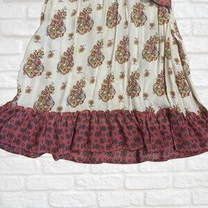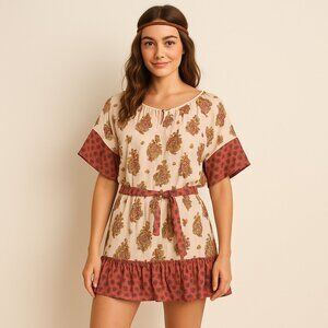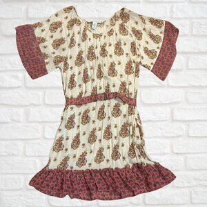 American Rag Boho Festival Peasant Mini Dress M Paisley Print Ruffle Hem Belted