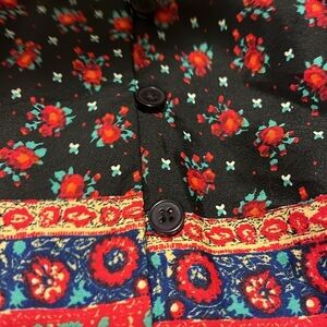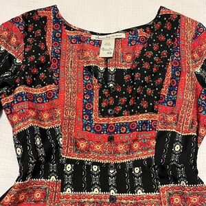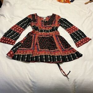 American Rag Boho Mini Dress Patchwork Bell Sleeve Scarf Tunic Flare Bandana XS