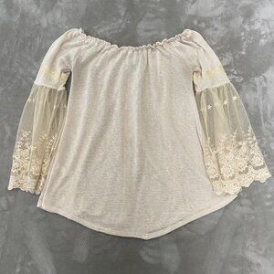 American Rag Boho Off-The-Shoulder Lace Bell Sleeve Oat Color Top Size S