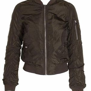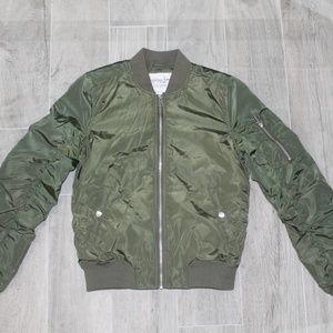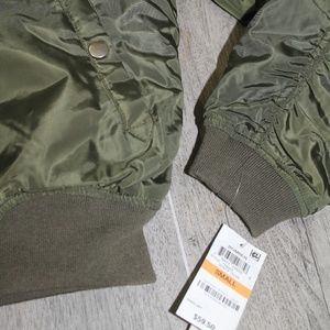 American Rag Juniors Olive Ruched-Back Bomber Jacket 100% Polyester Pattern: Solid Color: Olive XSmall: chest 17" Length 22" Small: chest 18" Length 23"