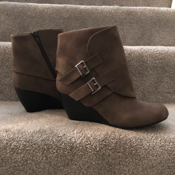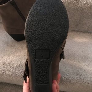 American Rag booties. Cute with a pair of skinny jeans or black skirt. Very comfortable and livable. Heel height 2.5 inch