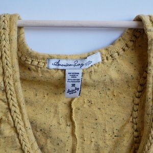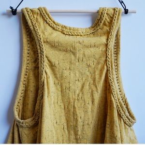 Mustard yellow racerback tank top with a loose fit & braided trim around the neck & arm holes.