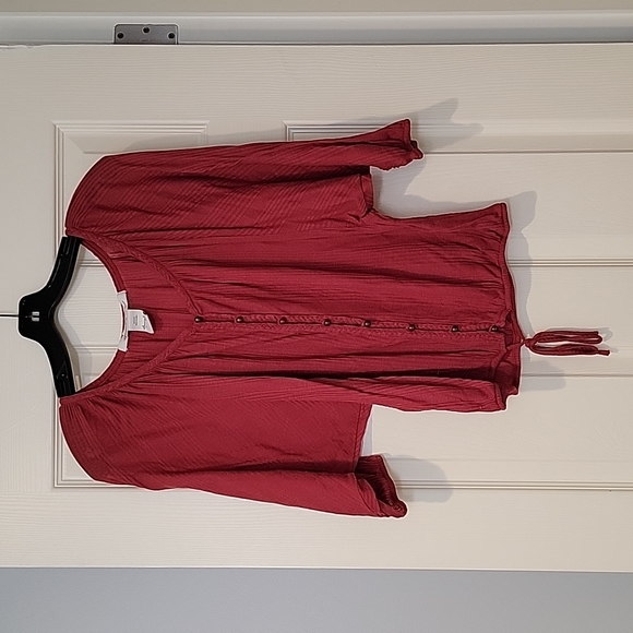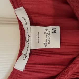 American Rag Button Up Drawstring Blouse. Size M. Red/ Dark Rust color. Good used condition with a small pull pictured.