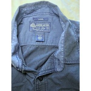 American Rag CIE Men's Large Button Up Shirt Short Sleeve Two Tone Blue Cotton