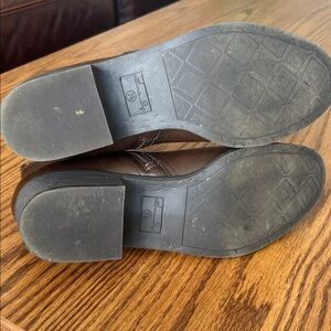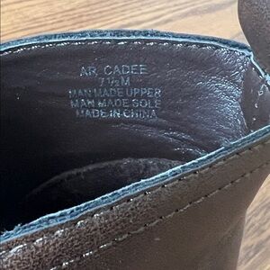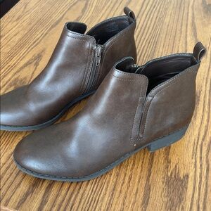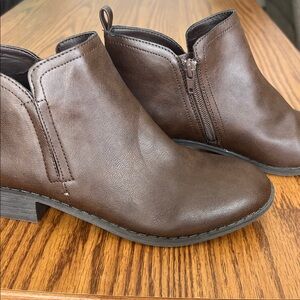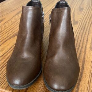 American Rag Cadee brown shoe boots, barely any wear on them at all. The size is a women’s 7.5. Beautiful deep brown in color. Item is in excellent preowned condition and ships promptly from a smoke free environment. 1.5” block heel, with round toe booties with a full side zipper; notche at side of top line at the back of the boots. The boots were only worn a few times by a family member. Manmade or microsuede upper; manmade sole.