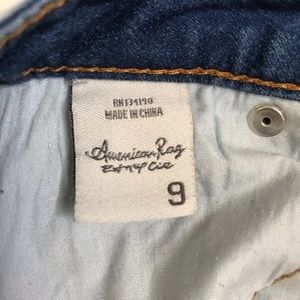 Holes in knee and cutoff bottom make for a casual cool look