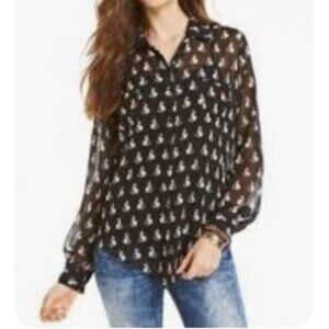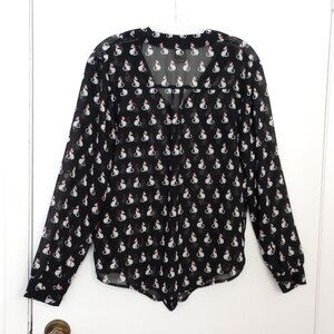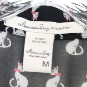 American Rag Cie Black & White Sheer Kitty Cat Print Blouse