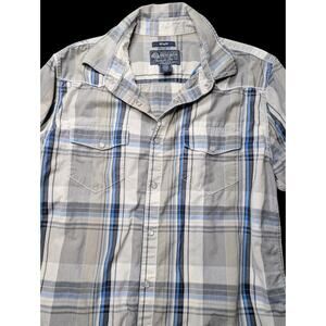 American Rag Cie Blue Plaid Flap Pocket Long Sleeve Western Pearl Snaps Men’s M