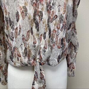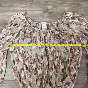 American Rag Cie BoHo Sheer Blouse Feather Print