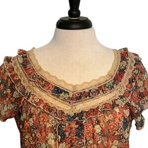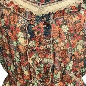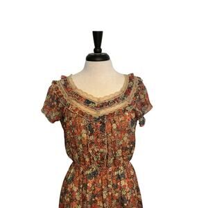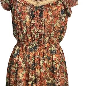 American Rag Cie Boho Brown Floral Lace Ruffle Short Sleeve Mini Dress Sz M