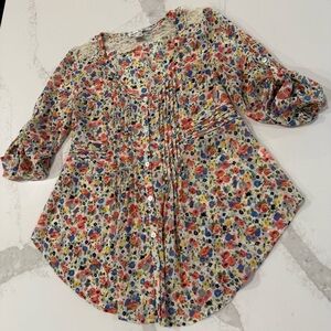 American Rag Cie Cottagecore Floral Tie Back Sheer Peasant Top Womens Small Lace